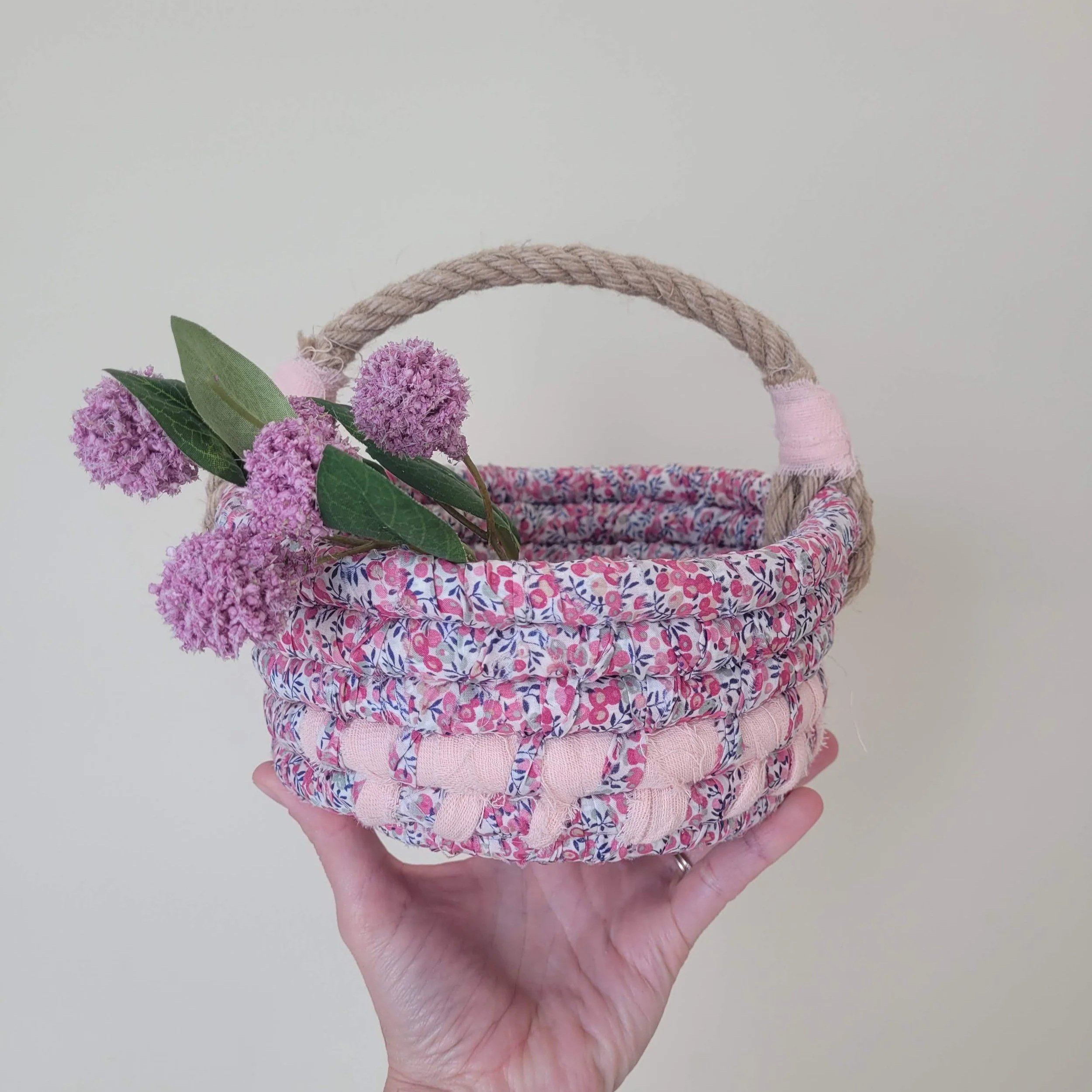 I don’t make handled baskets very often - but in spring - I do! My Little Fabric Basket is darling for an Easter basket for little hands, or to have on a coffee table with paper flowers or spring greens.