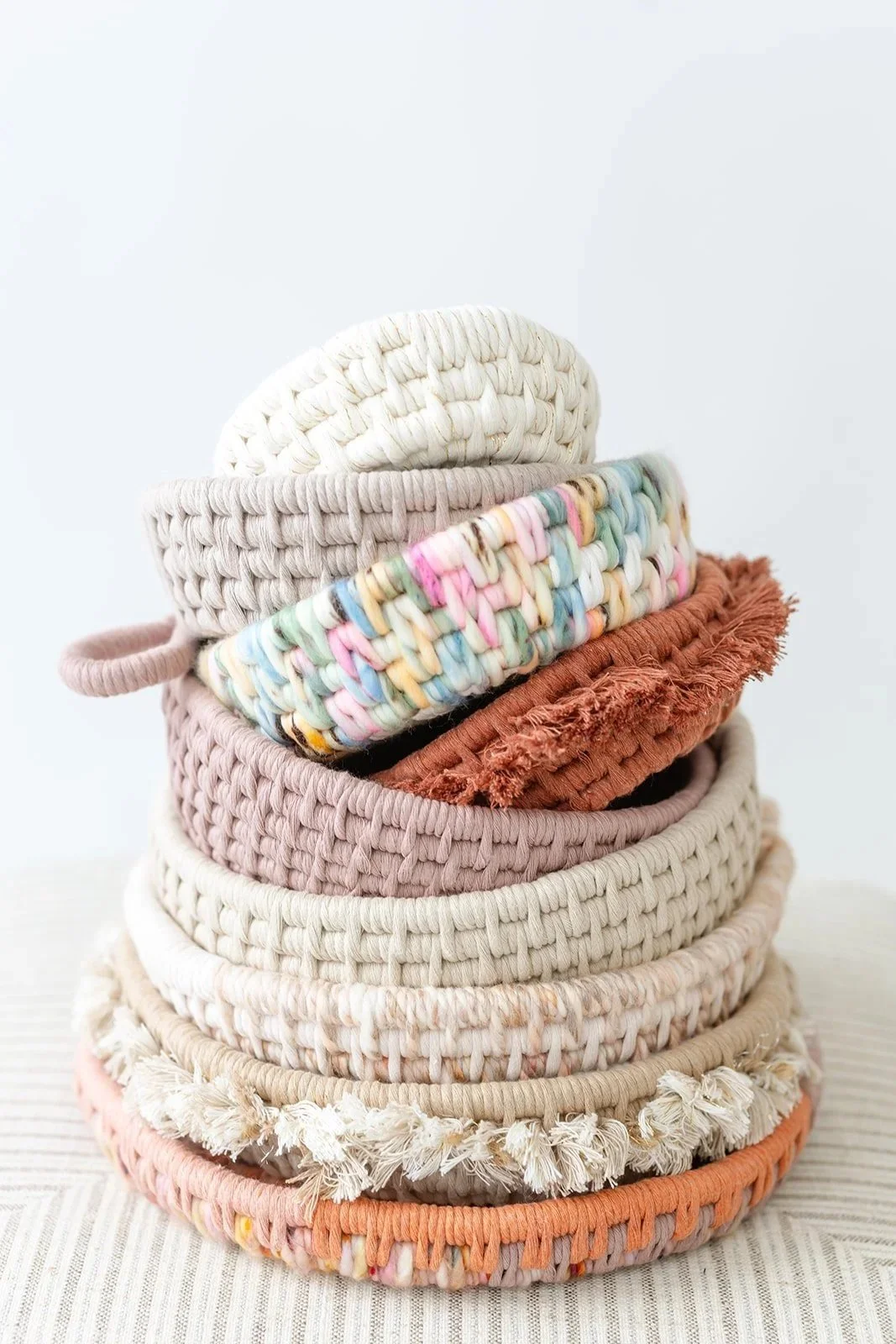tutorials to make the Nesting Baskets Set, the Knotty Basket, the Handle Basket, the Loop Bowl, the Double Stitch Tray, the Raffia Basket, and a bonus video to learn how to make Fringe